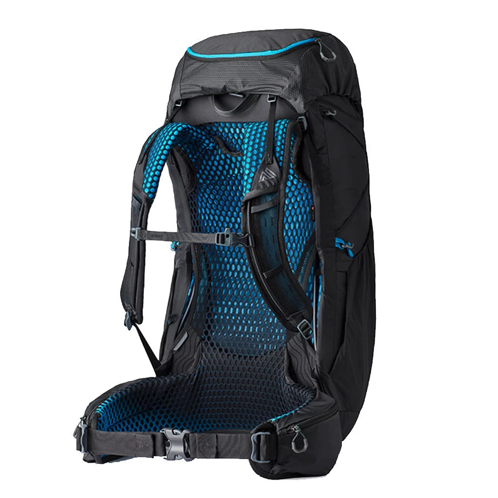 Bæresystemet består av et ryggpanel med luftig netting som er festet til aluminiumsstenger, som hjelper med å stabilisere vekten når du er i bevegelse. Skulderstroppene har brystreim imellom og er kledd med luftig polstring. Hoftebeltet er laget med 3D-teknologi for å gi en komfortabel passform. Disse er også utstyrt med ytre glidelåslommer som kan brukes til mobiltelefon, solbriller, snacks, eller annet du kan ha lyst til å ha for hånden.