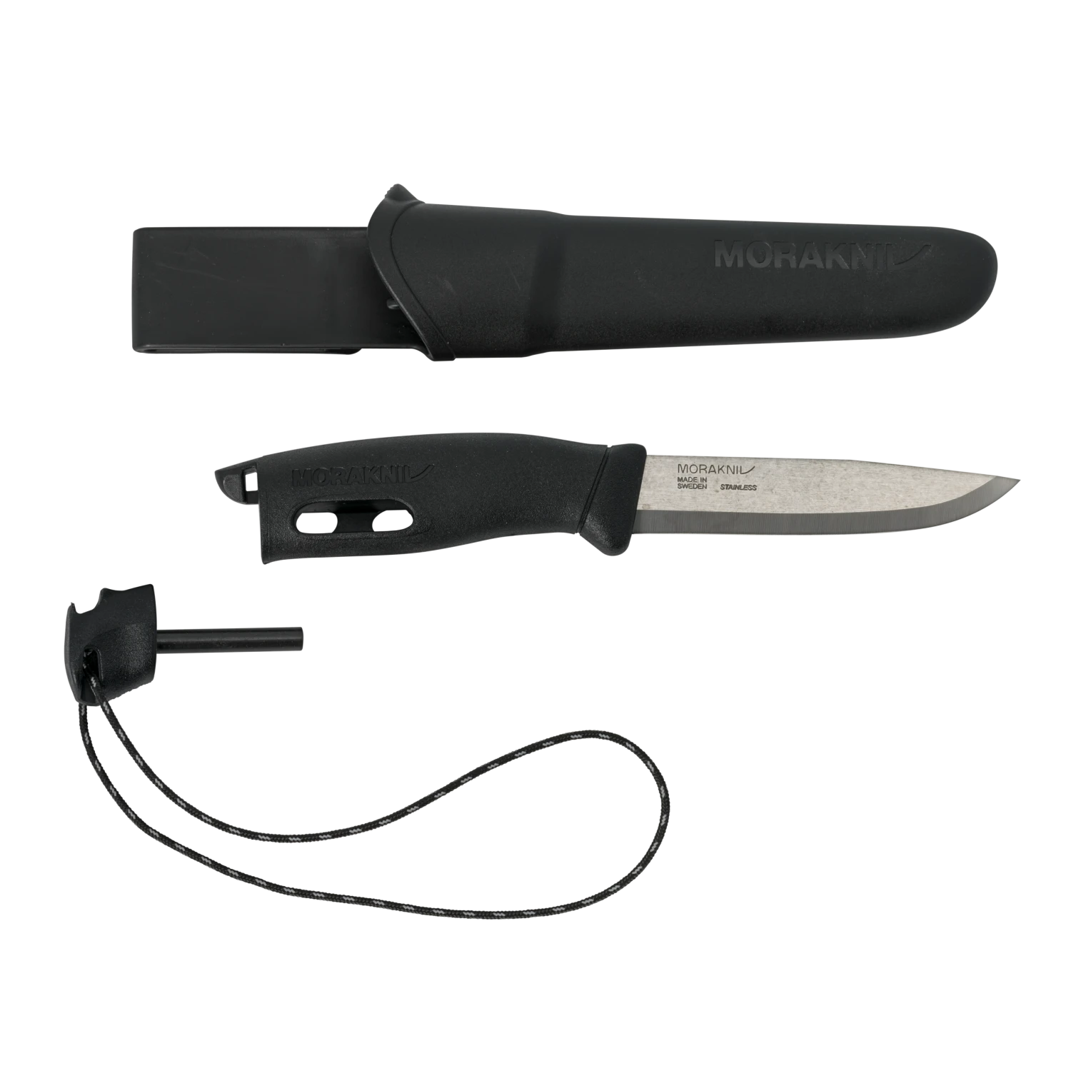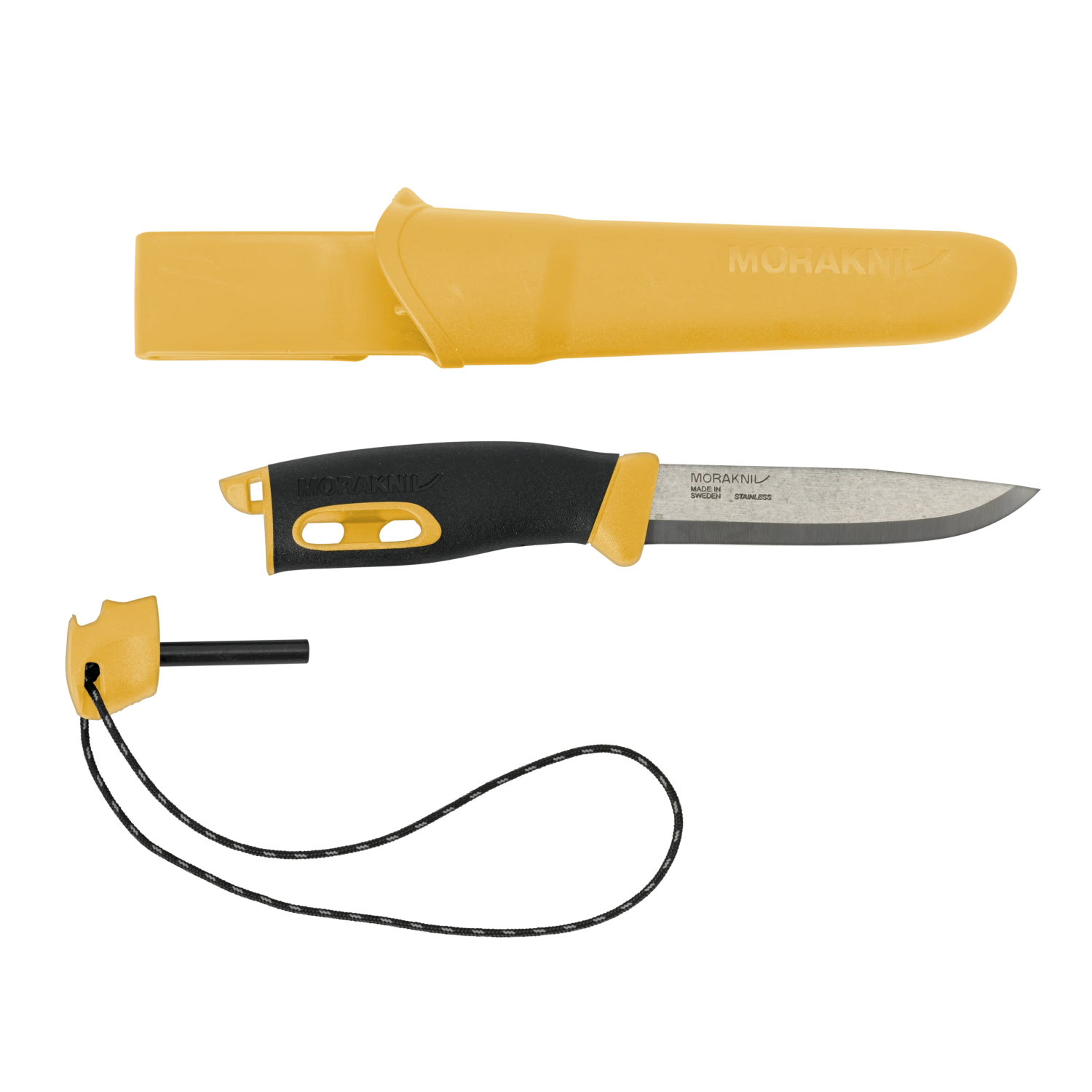 Spark er en variant av Companion – en av de mest populære modellene fra Morakniv, som er kjent for å lage turkniver som man kan stole på i all slags uvær. Kniven er laget i Svensk rustfritt stål, noe som minimerer behovet for vedlikehold og som gir bedre kantretensjon – at kniven holder seg skarp lenge. Den har et mykt håndtak laget i TPE-gummi, noe som gjør at den er sikrere og mer stødig å jobbe med. Sliren er laget i Polymer og har en praktisk belte-klips slik at du kan feste den til et belte eller en tursekk.