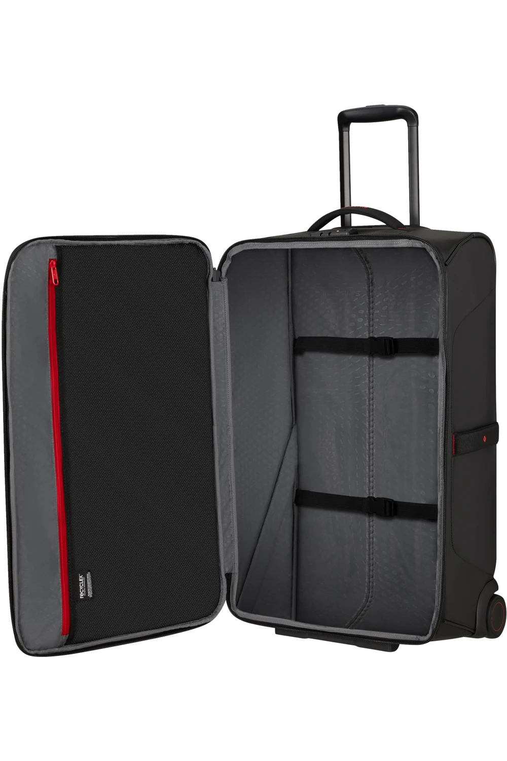 Solid vannavvisende trillebag. Kommer med 2 hjul og rommer 76 liter.