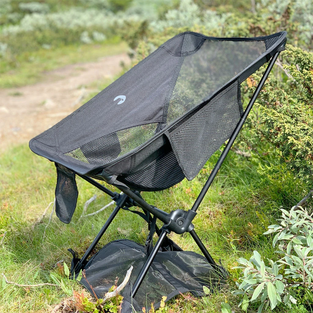 Dette er en turstol som raskt har blitt en favoritt blant turgåere landet over. Den har en praktisk truge som stabiliserer stolen, en koppholder, oppbevaringslommer, og er svært kompakt når den er sammenpakket!